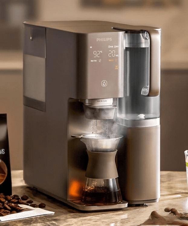 这台飞利浦净饮一体机,功能真不少!它不仅能提供冰、常温、热水,还有多档温度水量可选。最特别的是,它还能模拟矿石溶流过程,滤出含锶矿物质水,感觉喝水都能补充点微量元素了。另外,它还自带滴滤器,能让你在家轻松享受手冲咖啡的乐趣,萃取温度也控制得不错,能还原咖啡的纯正风味。